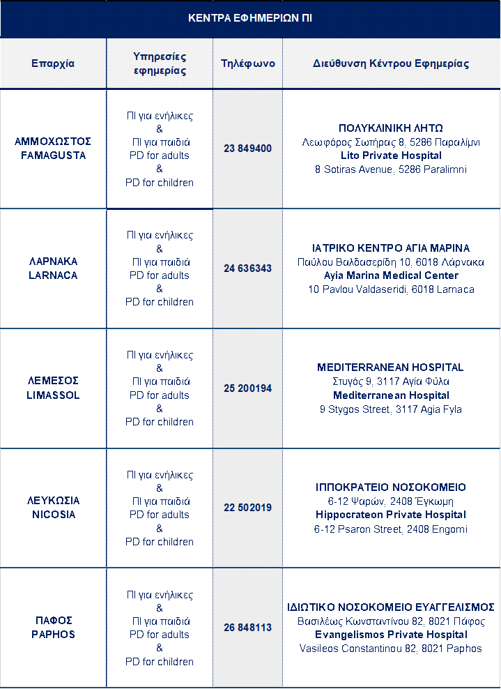 Ο Οργανισμός Ασφάλισης Υγείας (ΟΑΥ) ανακοινώνει τα στοιχεία επικοινωνίας για τις Υπηρεσίες Εφημερίας Προσωπικού Ιατρού .