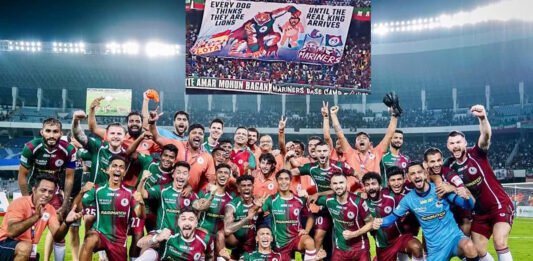 Οι φίλαθλοι της Μοχούν Μπαγκάν, μιας από τις πιο ιστορικές ομάδες ποδοσφαίρου της Ινδίας, ετοιμάζονται να κατακτήσουν μια θέση στο βιβλίο των Ρεκόρ Γκίνες. Το επίτευγμά τους; Η δημιουργία του μεγαλύτερου πανό στον κόσμο, με συνολική έκταση που αγγίζει τα 2.400 τ.μ. Το πανό, φτιαγμένο εξ ολοκλήρου στο χέρι, θα αποκαλυφθεί τη Δευτέρα, 27 Ιανουαρίου, … Συνεχίστε να διαβάζετε το ΓΚΙΝΕΣ: Το μεγαλύτερο ποδοσφαιρικό πανό στον κόσμο-Η στιγμή που θα απλωθεί αναμένεται να μείνει αξέχαστη- Ποιοι το έφτιαξαν.