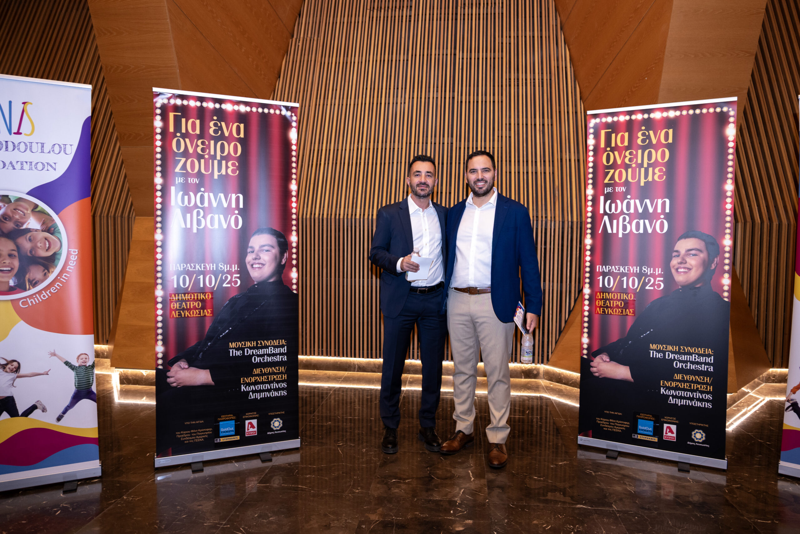 Μια βραδιά γεμάτη συγκίνηση, και λάμψη έζησαν όσοι βρέθηκαν το βράδυ του Σαββάτου στο κατάμεστο Δημοτικό Θέατρο Λευκωσίας, όπου ο 17χρονος τενόρος Ιωάννης Λιβανός παρουσίασε την παράσταση «Για ένα Όνειρο Ζούμε». Το μουσικό γεγονός αποτέλεσε ένα πραγματικό ταξίδι ψυχής και συγκέντρωσε προσωπικότητες από τον πολιτικό, καλλιτεχνικό και κοινωνικό χώρο.