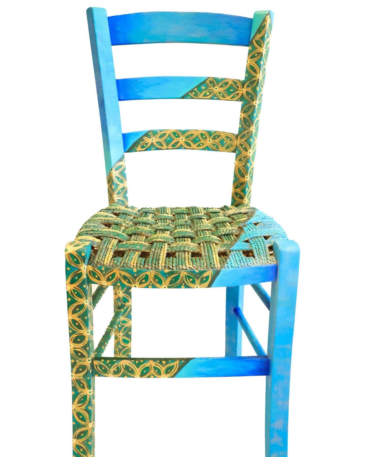 Καρέκλα L26 | Καλλιτέχνις: Λουκία Ζαχαριάδου | Τίτλος: Χρυσοπράσινο φύλλο | Υλικό: ακρυλικό Έχει πουληθεί
