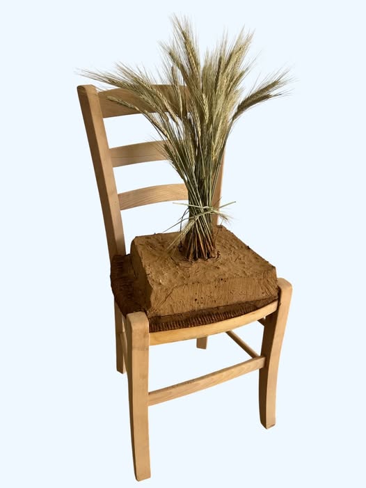 Καρέκλα L03 | Καλλιτέχνις: Άντρια Ζαχαρίου | Τίτλος: Ό,τι Έσπειρες | Υλικά: σιτάρι, άχυρο και χώμα