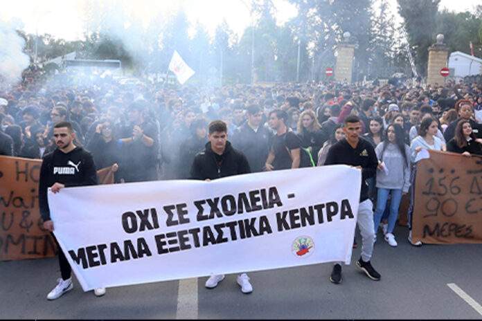 Στο Προεδρικό βρίσκονται μαθητές, καθηγητές και γονείς, που διαμαρτύρονται για τις εξετάσεις τετραμήνων, ζητώντας την άμεση αναστολή τους.