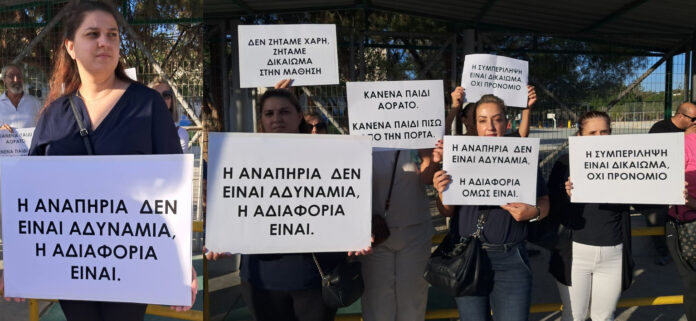 Να επισημάνουμε ότι πριν λίγες ημέρες με αποκλειστικό ρεπορτάζ, μητέρα από τη Λεμεσό είχε καταγγέλλει ότι η Επαρχιακή Επιτροπή Ειδικής Αγωγής και Εκπαίδευσης αποφάσισε, χωρίς καμία προηγούμενη ενημέρωση, να τοποθετήσει τα δύο παιδιά της – ηλικίας 5,5 και 7 ετών – στο πλαίσιο φοίτησης ειδικής μονάδας, παρά το γεγονός ότι πέρσι φοιτούσαν στη γενική τάξη με τον συνοδό τους, τον οποίο μοιράζονταν με άλλα παιδιά. Να αναφέρουμε ότι η περίπτωση αυτή δεν αφορά μόνο δύο παιδιά αλλά και άλλα τα οποία αυθαίρετα και χωρίς καμιά ουσιαστική προειδοποίηση οι αρμόδιοι αποφάσισαν να μετακινήσουν τα παιδιά από τις τάξεις. Οι διαμαρτυρίες θα συνεχιστούν και την Δευτέρα