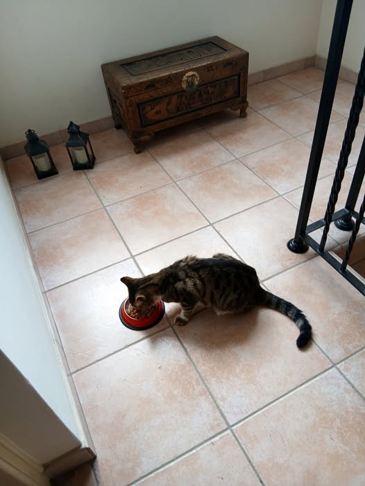 «Μία από τις αγαπημένες μου εικόνες: ένα αδεσποτάκι που τρώει με όρεξη το φαγητό του! Νέα άφιξη! Όταν τον είδα πρώτη φορά, τον ονόμασα skinny. Σήμερα, τρεις μήνες μετά, αναβαθμίστηκε σε…Not so skinny! Ζω για τη μέρα που δεν θα υπάρχουν αδέσποτα, ούτε παιδιά που πεινούν, ούτε πόλεμοι, ούτε φτώχεια, ούτε κακία…Μέχρι τότε, θα ελπίζω σ’ έναν κόσμο που υπάρχει στα όνειρά μου»