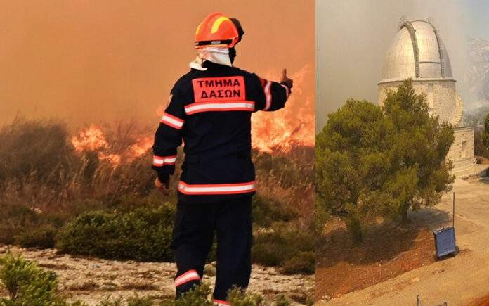 Η κατάσταση είναι εξαιρετικά σοβαρή με τη φωτιά να έχει εξαπλωθεί στην περιοχή της Πεντέλης και να απειλεί πλέον τον περίβολο του Εθνικού Αστεροσκοπείου Αθηνών.