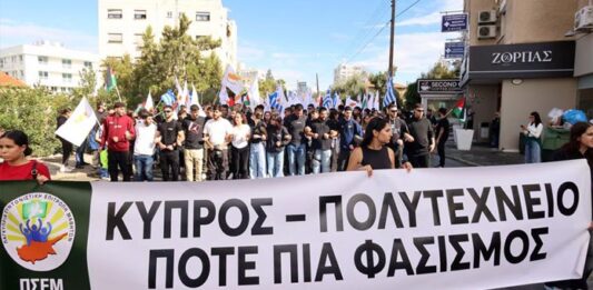 Στους δρόμους της Λευκωσίας βρίσκονται σήμερα οι μαθητές, συμμετέχοντας στις εκδηλώσεις για την 17η Νοεμβρίου, επέτειο της εξέγερσης του Πολυτεχνείου του 1973. Η πορεία, που διοργανώνεται από την Παγκύπρια Συντονιστική Επιτροπή Μαθητών (ΠΣΕΜ), ξεκίνησε στις 10:30 π.μ. από τα γραφεία της ΠΑΣΥΔΥ και κατευθύνεται προς την Αμερικανική Πρεσβεία, όπου στις 11:00 θα πραγματοποιηθεί εκδήλωση. Η … Συνεχίστε να διαβάζετε το ΠΟΛΥΤΕΧΝΕΙΟ: Διαδηλώσεις στη Λευκωσία για την 17η Νοεμβρίου – Πορεία μαθητών προς την Αμερικανική Πρεσβεία.