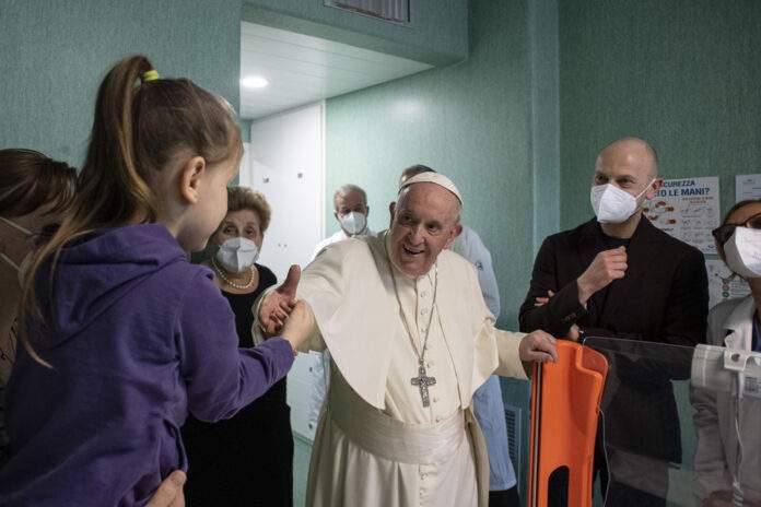 Ο Πάπας Φραγκίσκος επισκέφθηκε το απόγευμα του Σαββάτου μικρούς Ουκρανούς που έχουν εισαχθεί στο καθολικό παιδιατρικό νοσοκομείο Μπαμπίν Τζεζού στη Ρώμη.