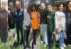 Οι νεόνυμφοι χαμογελαστοί, πλαισιωμένοι από τους γονείς της Σοφίας, Πάτρα και Δημήτρη Ορατίου, και τον αδελφό της, Νικόλα με τη σύζυγο και το μωρό του.