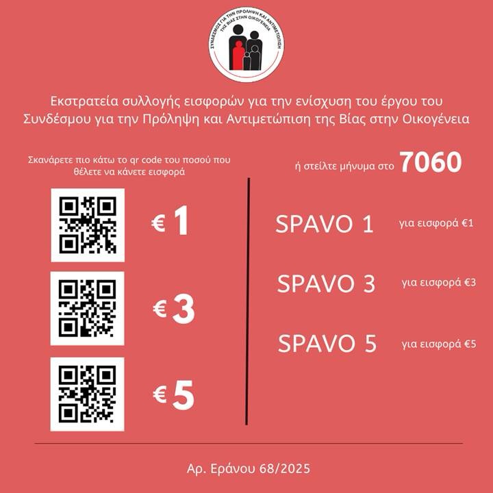 Με αφορμή την Παγκόσμια Ημέρα για την Εξάλειψη της Βίας κατά των Γυναικών (25 Νοεμβρίου) και την Ημέρα Ανθρωπίνων Δικαιωμάτων (10 Δεκεμβρίου), ο Σύνδεσμος για την Πρόληψη και Αντιμετώπιση της Βίας στην Οικογένεια (ΣΠΑΒΟ) ξεκινά την εκστρατεία: «Μαζί προστατεύουμε ζωές – Στήριξε τα προγράμματα πρώτης γραμμής».