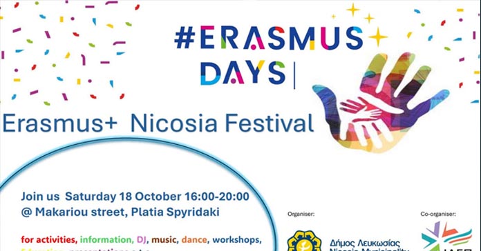 Ένα μοναδικό φεστιβάλ αφιερωμένο στο πρόγραμμα Erasmus+, στο πλαίσιο των #ErasmusDays 2025, διοργανώνουν ο Δήμος Λευκωσίας και το Ίδρυμα Διαχείρισης Ευρωπαϊκών Προγραμμάτων Διά Βίου Μάθησης (ΙΔΕΠ).
