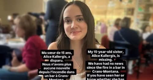 Η οικογένεια της 15χρονης Αλίκης Καλλέργη (Alice Kallergis), διπλής ελληνοελβετικής υπηκοότητας, απευθύνει απεγνωσμένες εκκλήσεις μέσω κοινωνικών δικτύων για να εντοπίσει την κόρη τους, η οποία αγνοείται μετά τη φονική πυρκαγιά στο μπαρ «Le Constellation» στο ελβετικό χιονοδρομικό κέντρο Κραν Μοντανά την παραμονή της Πρωτοχρονιάς.