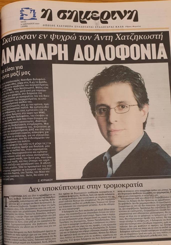 Έχουν περάσει 16 χρόνια από τότε που ο Άντης Χατζηκωστής δολοφονήθηκε έξω από το σπίτι του. Από τότε, η οικογένειά του ζει έναν αβάσταχτο πόνο. Για εμάς που τον γνωρίσαμε μόνο ως εργοδότη και για αμέτρητες ώρες της ζωής μας, παραμένει ξεκάθαρο ότι ήταν ένας άνθρωπος γεμάτος θετικότητα, πίστη σε ό,τι έκανε, δημιουργικότητα, ιδέες και όνειρα. 16 χρόνια μετά, όποιος αναζητήσει στο διαδίκτυο θα βρει κείμενα συναδέλφων του που μιλούν με τα καλύτερα λόγια για τον Άντη Χατζηκωστή, εκφράζοντας ευγνωμοσύνη για όσα έζησαν στο συγκρότημα ΔΙΑΣ.