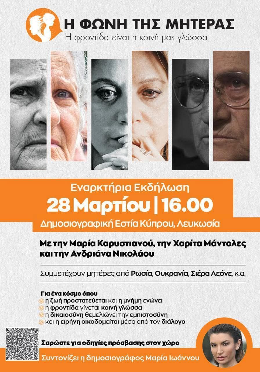 Η πρωτοβουλία «Η Φωνή της Μητέρας» πραγματοποιεί την εναρκτήρια εκδήλωσή της σήμερα Σάββατο 28 Μαρτίου στις 16:00, στη Δημοσιογραφική Εστία Κύπρου, φέρνοντας κοντά γυναίκες από διαφορετικά μέρη του κόσμου για έναν διάλογο γύρω από τη μνήμη, τη φροντίδα και την ειρήνη.