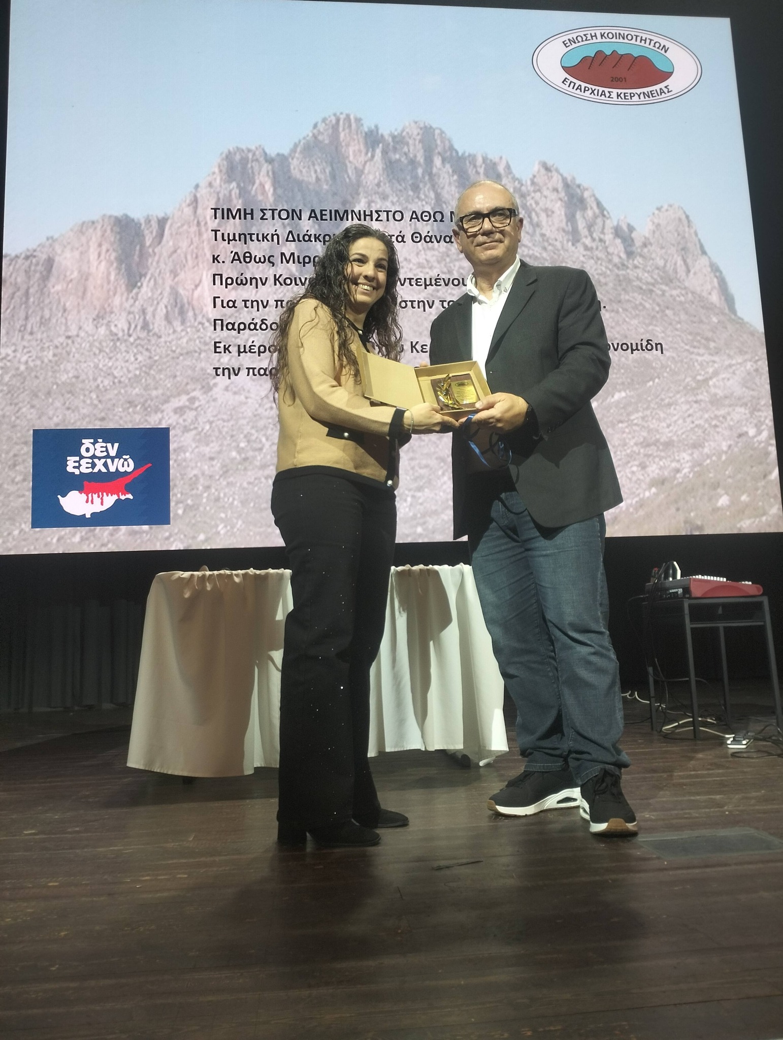 ΑΘΩΣ ΜΙΡΑΧΗΣ: Μετά θάνατον τιμή στον τέως κοινοτάρχη Κοντεμένου– Η κόρη του παρέλαβε την πλακέτα