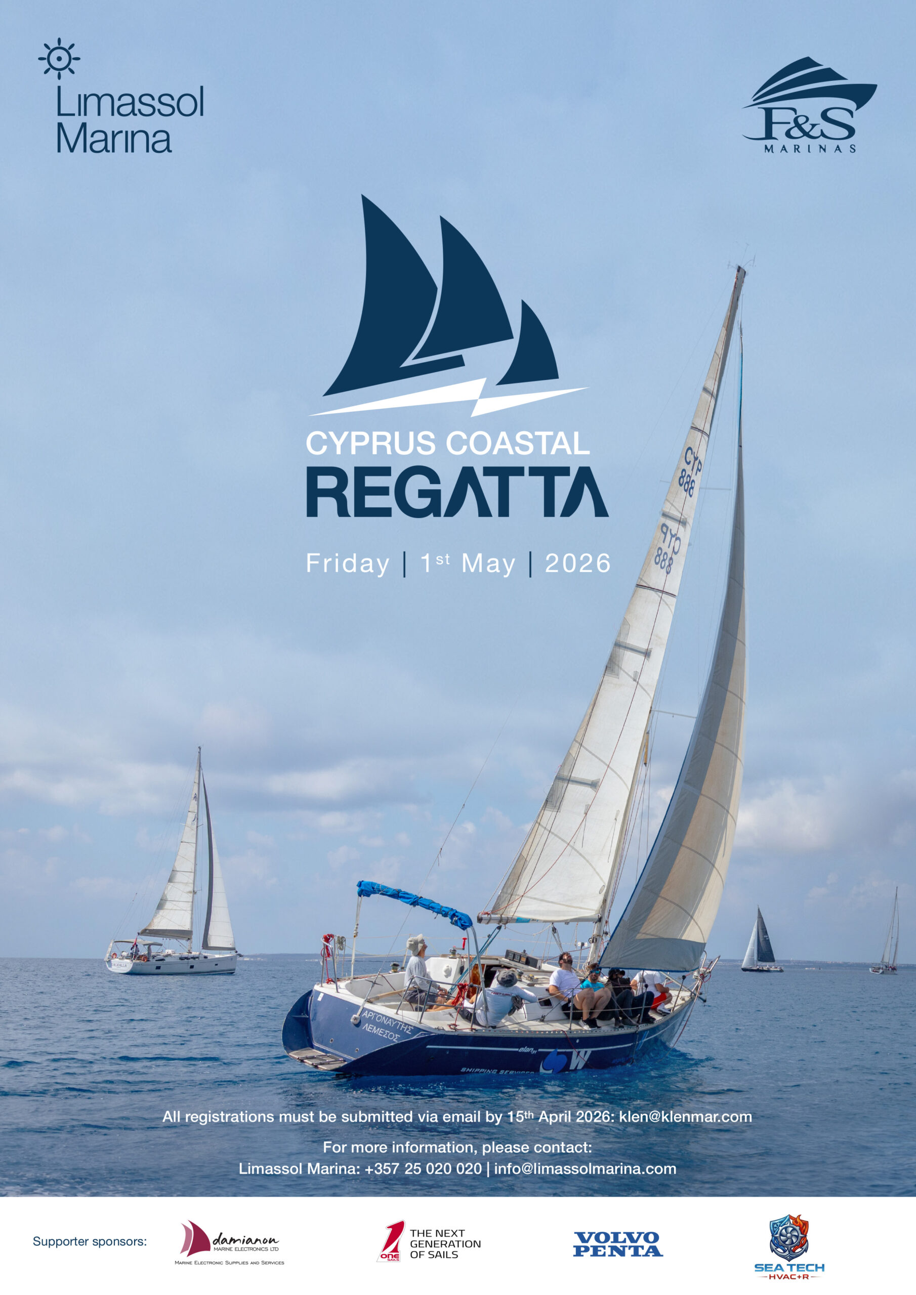 Για περισσότερες πληροφορίες σχετικά με την Cyprus Coastal Regatta, μπορείτε να επισκεφτείτε την ιστοσελίδα ή τις επίσημες σελίδες κοινωνικής δικτύωσης της Μαρίνας Λεμεσού.