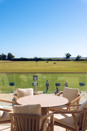 Στο νέο golf resort της πόλης, μόλις λίγα λεπτά από τη Μαρίνα και το ιστορικό κέντρο, η γαστρονομία συνδέεται οργανικά με το τοπίο και την ατμόσφαιρα. Το πράσινο του γηπέδου golf και η ανοιχτή θέα προς την Αλυκή Ακρωτηρίου και το δάσος Ασωμάτου συνθέτουν ένα σκηνικό με ξεκάθαρη ταυτότητα που ενισχύει συνολικά την εμπειρία.