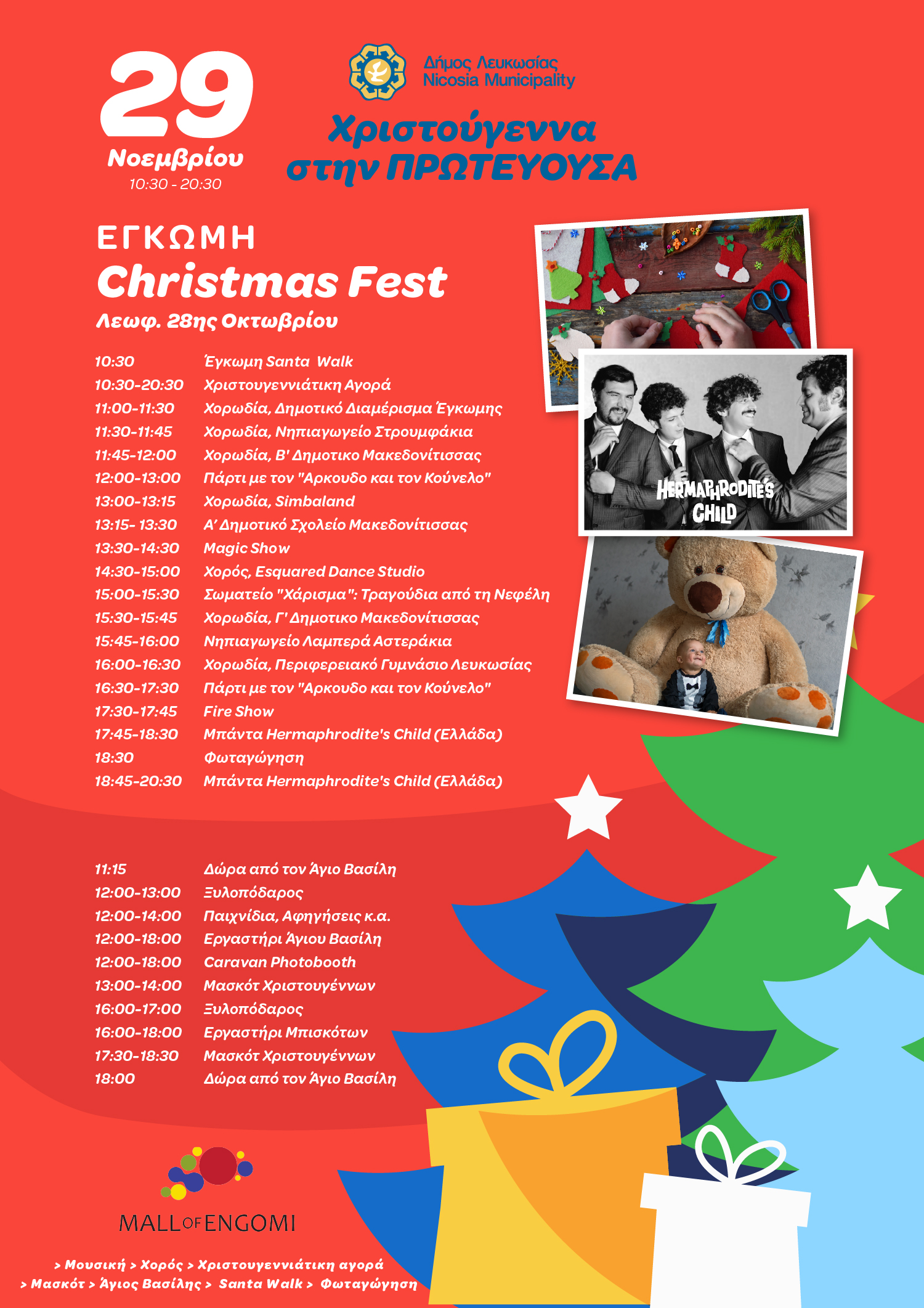 Ο Δήμος Λευκωσίας, σε συνεργασία με το Mall of Engomi, διοργανώνει και φέτος το «Engomi Christmas Fest», μία από τις πιο αγαπημένες χριστουγεννιάτικες εκδηλώσεις της πόλης.