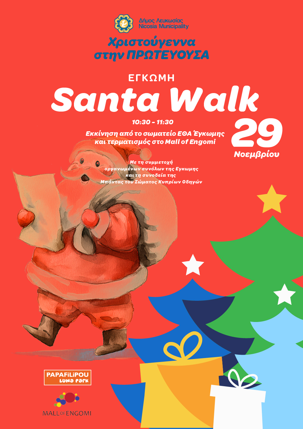 Η γιορτινή μέρα θα ξεκινήσει στις 10:30 με το Santa Walk, που θα έχει αφετηρία το Σωματείο ΕΘΑ Έγκωμης, καλώντας μικρούς και μεγάλους να φορέσουν τις στολές τους και να δώσουν όλοι μαζί το πιο ζεστό ξεκίνημα στη μεγάλη γιορτή της περιοχής. Το Engomi Christmas Fest 2025 υπόσχεται μια ολόκληρη μέρα γεμάτη φως, χαρά και χριστουγεννιάτικη μαγεία. Το πρόγραμμα έχει σχεδιαστεί έτσι ώστε να προσφέρει εμπειρίες για όλες τις ηλικίες και να μεταφέρει το γιορτινό πνεύμα σε κάθε γωνιά της εκδήλωσης.