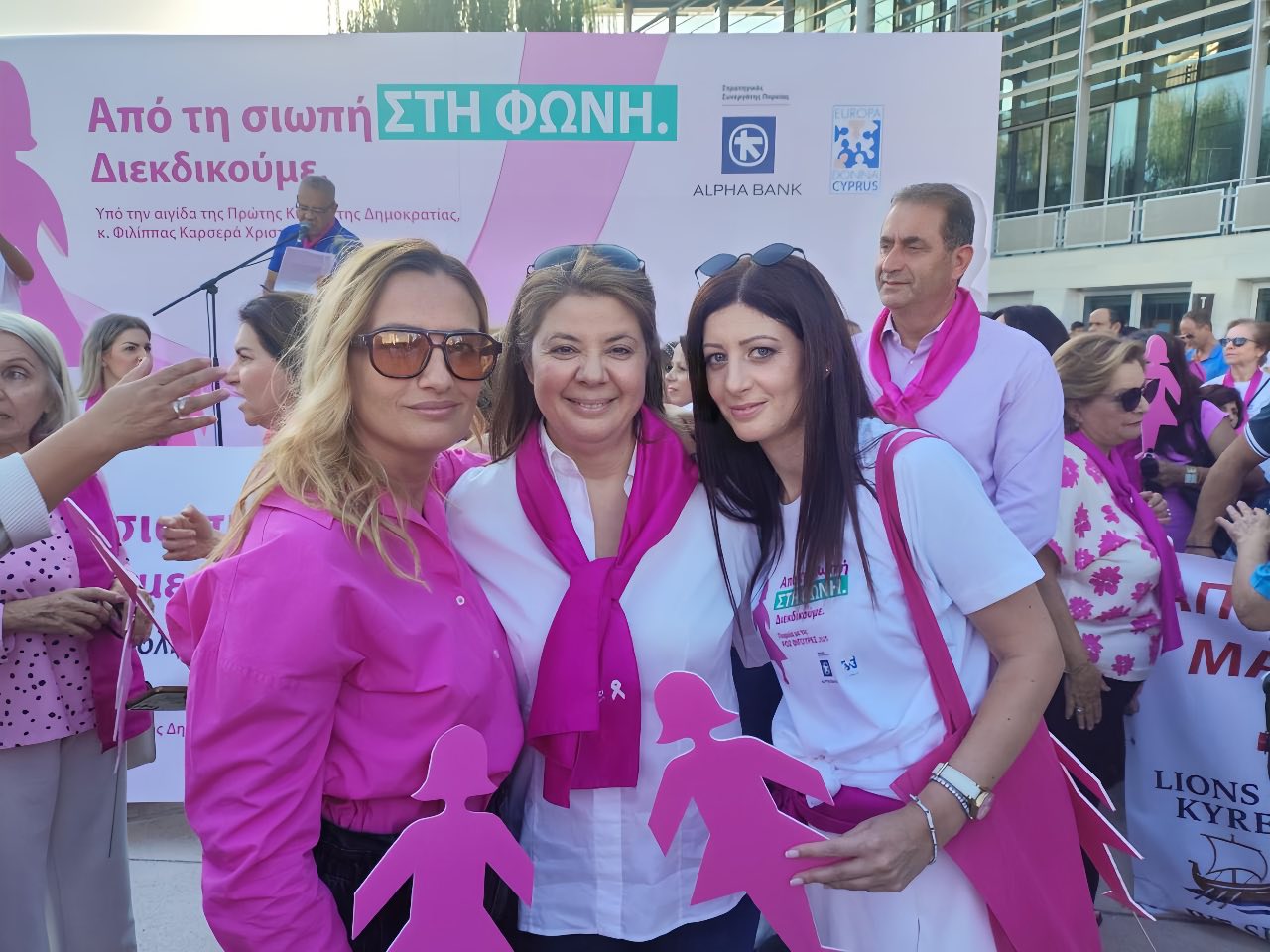 Η Λευκωσία πλημμύρισε από ροζ χρώμα και μηνύματα ελπίδας, καθώς πραγματοποιήθηκε σήμερα Σάββατο 4 Οκτωβρίου η καθιερωμένη Πορεία με τις Ροζ Φιγούρες της Europa Donna Κύπρου, υπό την αιγίδα της Πρώτης Κυρίας, Φιλίππας Καρσερά Χριστοδουλίδη. Γυναίκες και άνδρες από όλες τις ηλικίες περπάτησαν μαζί, ενώ δεν έλειψαν και τα αγαπημένα τετράποδα, που είχαν σήμερα την τιμητική τους, δίνοντας ακόμη πιο ζωντανό χαρακτήρα στην εκδήλωση.