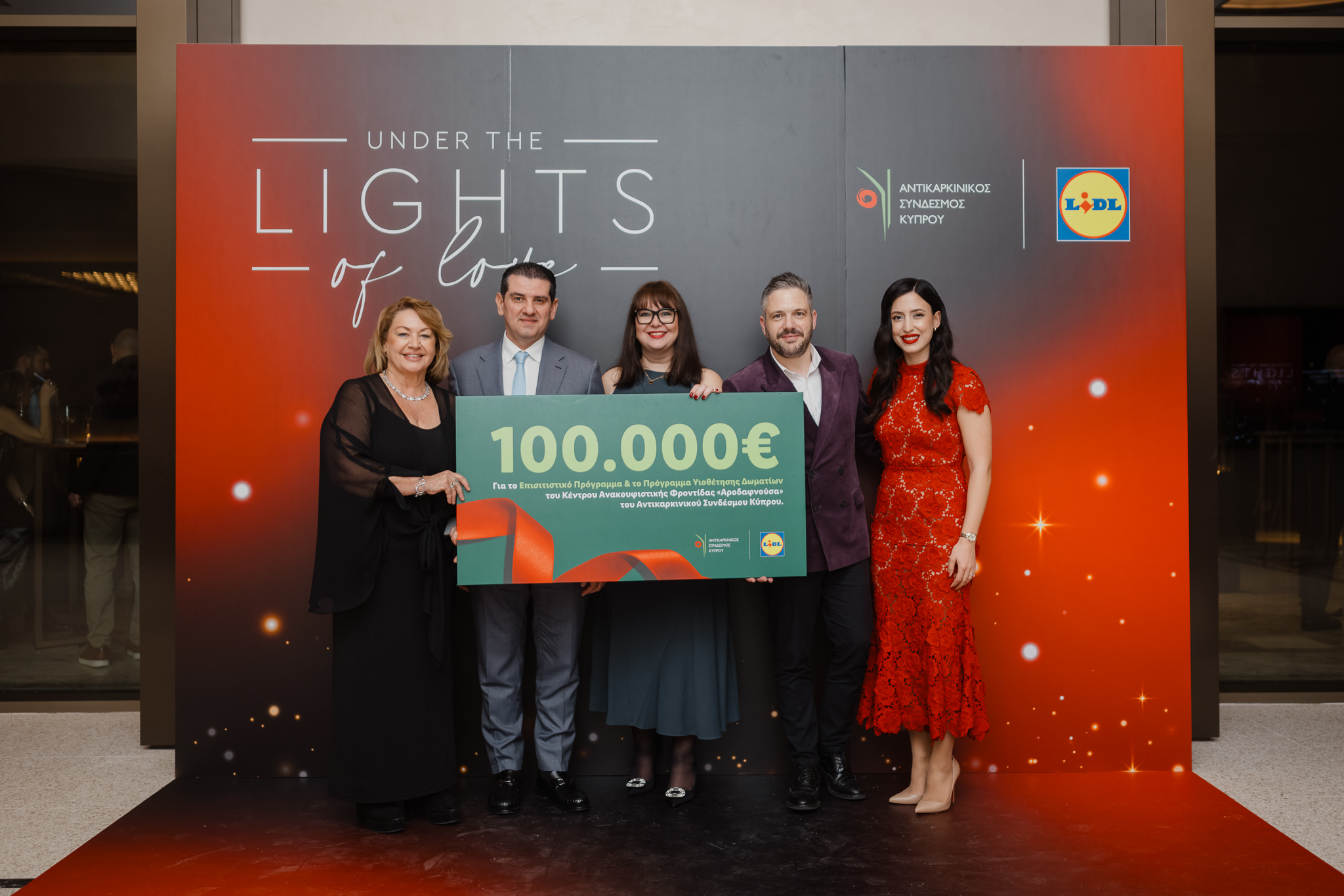 Τεράστια επιτυχία σημείωσε το επετειακό φιλανθρωπικό δείπνο αγάπης «Under the Lights of Love», που πραγματοποιήθηκε στο ξενοδοχείο The Landmark Nicosia. Η Lidl Κύπρου κάλυψε πλήρως τα έξοδα της βραδιάς, ενώ το σύνολο των εσόδων θα διατεθεί για την ενίσχυση του Κέντρου Ανακουφιστικής Φροντίδας «Αροδαφνούσα».