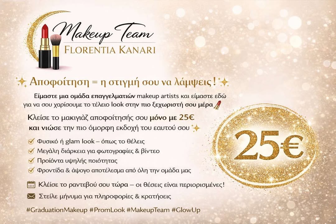 Οι θέσεις είναι περιορισμένες, γι’ αυτό οι ενδιαφερόμενες καλούνται να κλείσουν ραντεβού στέλνοντας μήνυμα για πληροφορίες και κρατήσεις.