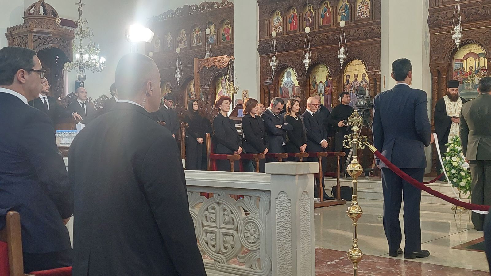Στον Ιερό Ναό βρέθηκαν επίσης πρώην συνεργάτες και πολιτικοί αντίπαλοι του εκλιπόντος, πανεπιστημιακοί, άνθρωποι των γραμμάτων και πλήθος απλών πολιτών, που θέλησαν να αποδώσουν φόρο τιμής σε έναν Πρόεδρο ο οποίος, ανεξαρτήτως πολιτικών διαφωνιών, άφησε ισχυρό αποτύπωμα στη δημόσια ζωή του τόπου.