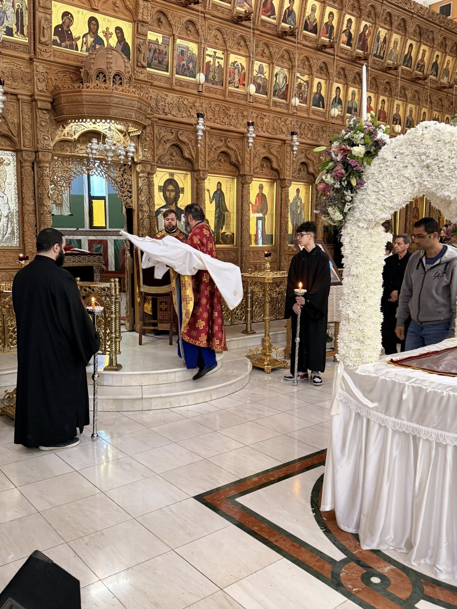 Η λειτουργία τελέστηκε και στον Ιερό Ναό Αποστόλου Μάρκου στον Αρχάγγελο, με τη συμμετοχή πλήθους πιστών που προσήλθαν για να παρακολουθήσουν τις ιερές ακολουθίες της Μεγάλης Εβδομάδας. Οι πιστοί βρέθηκαν από νωρίς στον ναό, προσερχόμενοι με ευλάβεια για να συμμετάσχουν στη λειτουργική ζωή της ημέρας, η οποία είναι αφιερωμένη στα Πάθη του Χριστού και κορυφώνει το πνευματικό ταξίδι προς την Ανάσταση.