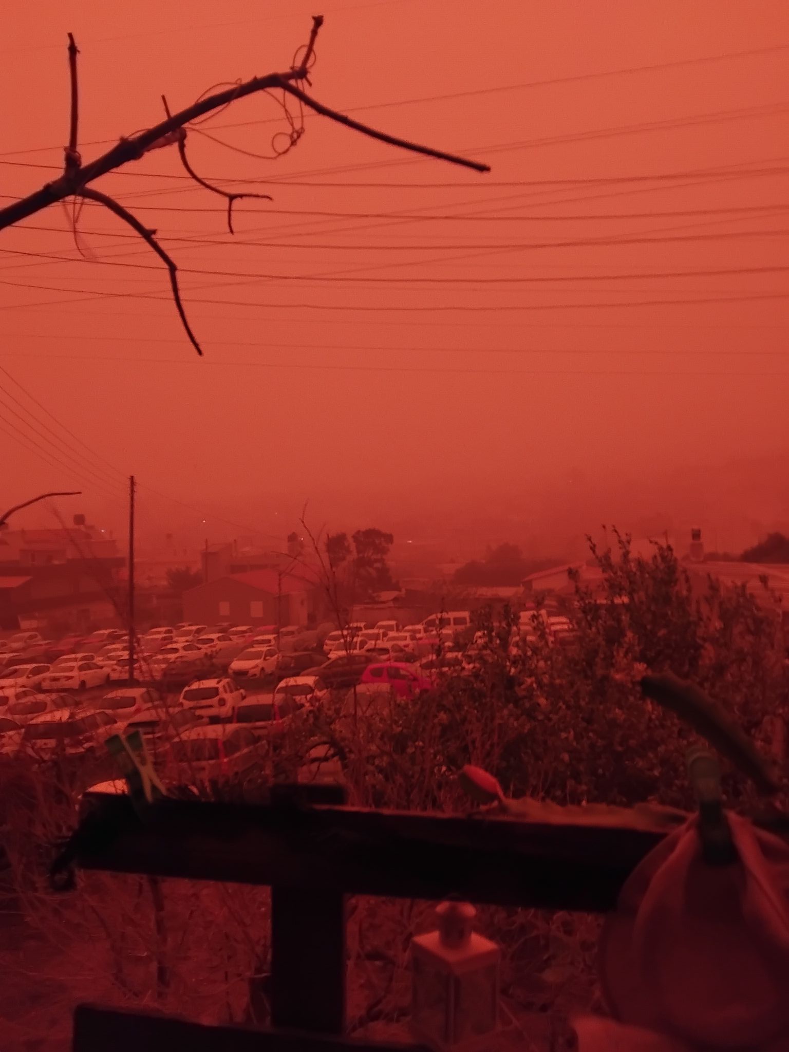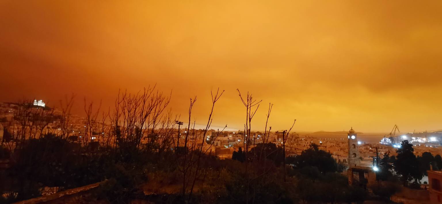 Ένα πυκνό νέφος αφρικανικής σκόνης έχει καλύψει μεγάλο μέρος της Ελλάδας, μεταφέροντας σωματίδια από τη Σαχάρα και δημιουργώντας ουρανό με έντονες πορτοκαλί‑κοκκινωπές αποχρώσεις σε πολλές περιοχές. Το φαινόμενο συνδυάζεται με ισχυρούς νοτιάδες και την κακοκαιρία «Erminio», που βοηθούν στη μεταφορά της σκόνης από τη Βόρεια Αφρική προς την Ελλάδα.