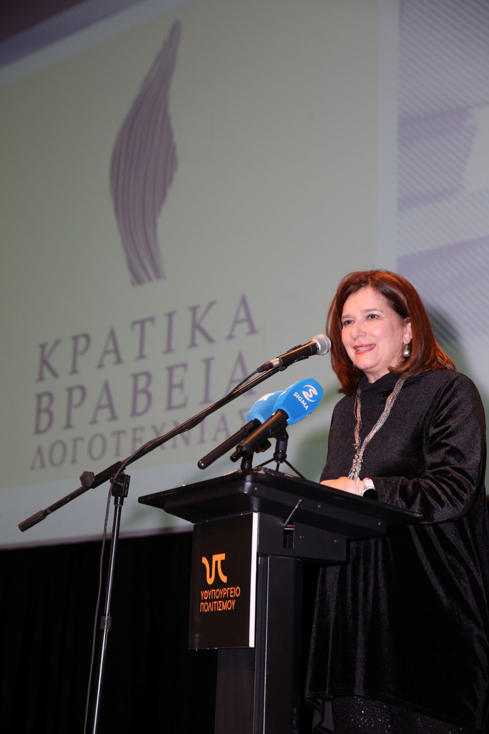 Στον χαιρετισμό της, η Υφυπουργός συνεχάρη τους βραβευθέντες, σημειώνοντας ότι με το έργο τους συμβάλλουν ουσιαστικά στη διατήρηση και ενίσχυση της λογοτεχνικής δημιουργίας, αναδεικνύοντας τη σημασία του λόγου και της ανθρώπινης εμπειρίας στη σύγχρονη εποχή.