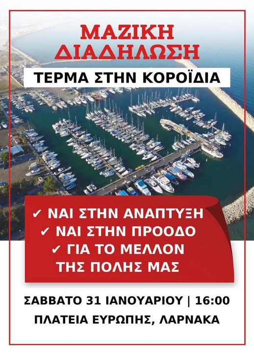 «Η Λάρνακα δεν ζητά χάρη. Διεκδικεί το αυτονόητο», αναφέρουν χαρακτηριστικά, καλώντας την Πολιτεία να αναλάβει τις ευθύνες της και να βάλει τέλος στην αδράνεια που, όπως λένε, κρατά την πόλη πίσω.Η αυριανή συγκέντρωση φιλοδοξεί να στείλει ένα σαφές μήνυμα: ότι η υπομονή έχει εξαντληθεί και πως ήρθε η ώρα το έργο του λιμανιού και της μαρίνας να μπει επιτέλους σε τροχιά υλοποίησης, ώστε η Λάρνακα να πάρει τη θέση που της αξίζει.