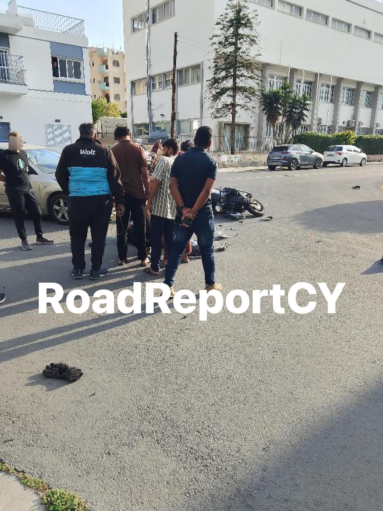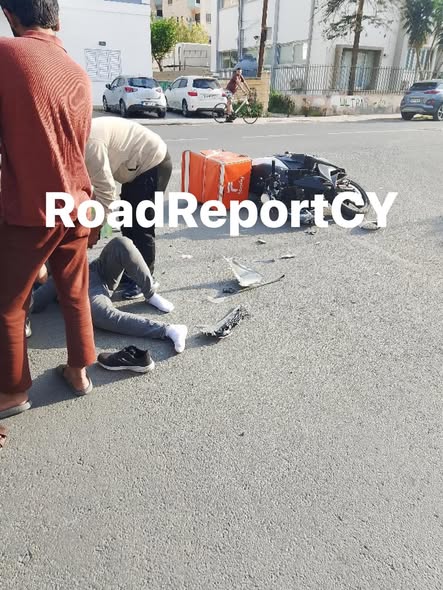 Σύμφωνα με φωτογραφίες από το RoadReportCy, γύρω στις 17:15, μοτοσικλέτα που οδηγούσε διανομέας και κινούνταν ευθεία στον δρόμο, συγκρούστηκε με ιδιωτικό όχημα. Όπως αναφέρουν μαρτυρίες από τη σκηνή, το αυτοκίνητο, στο οποίο επέβαιναν δύο νεαρά πρόσωπα, επιχείρησε απότομη στροφή με ταχύτητα, με αποτέλεσμα να ανακόψει την πορεία της μοτοσικλέτας και να προκληθεί η σύγκρουση.