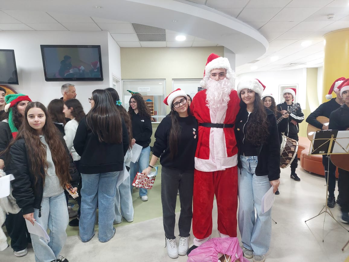 Οι μαθητές, μαζί με τους καθηγητές τους, τη μουσικό Μαρία Πέτρου-Ηλία και τον καθηγητή Θρησκευτικών κ. Χρυσοστόμο Μελλή, ο οποίος συνόδευε καθ’ όλη τη διάρκεια της εκδήλωσης με το βιολί του, παρέδωσαν δώρα στα μικρά παιδιά, τόσο έξω από τους θαλάμους όσο και μέσα στο νοσηλευτήριο, σκορπίζοντας χαμόγελα και ζεστασιά.