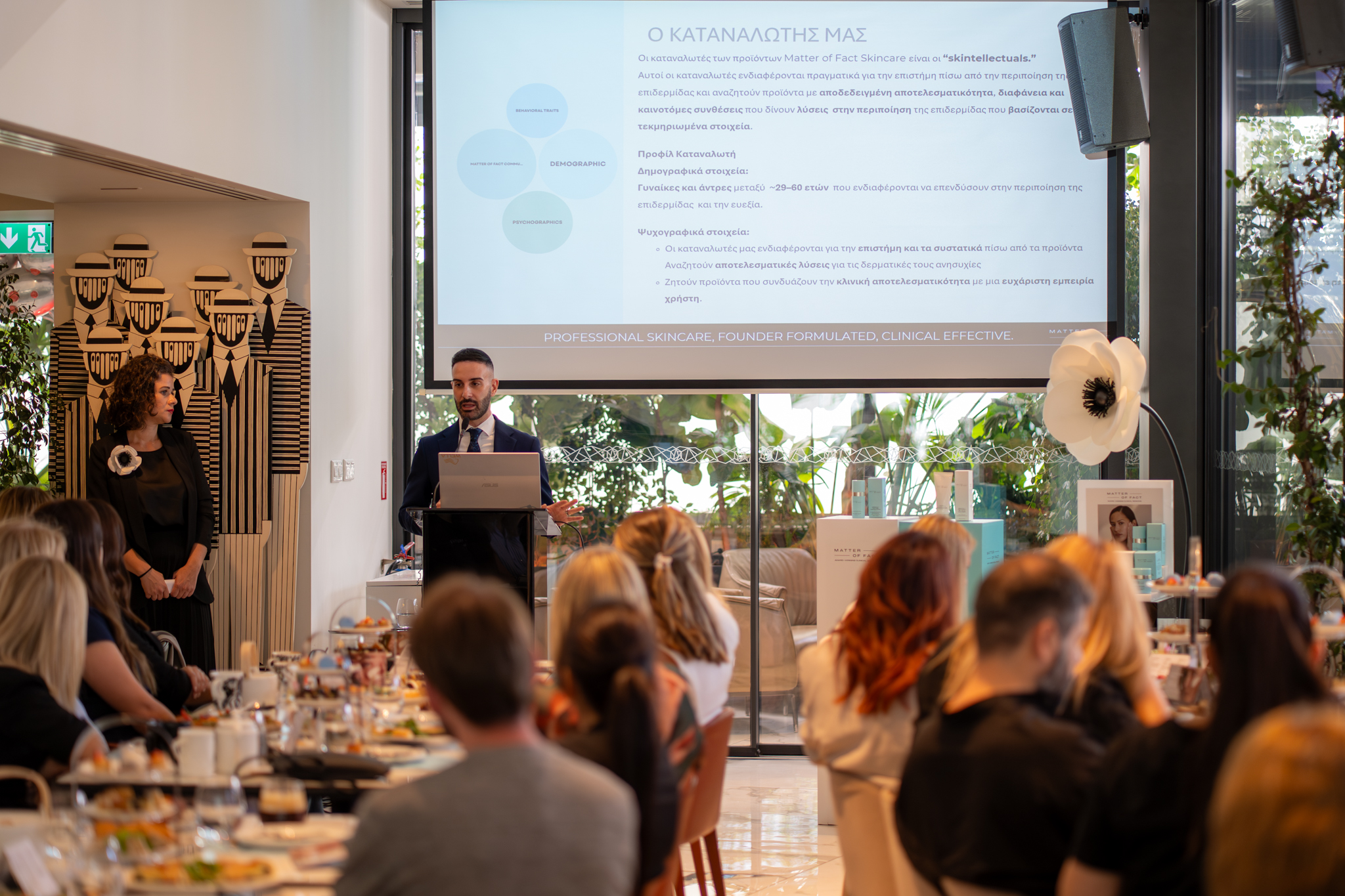 Η εκδήλωση παρουσίασης της Matter of Fact Skincare, του νέου, βραβευμένου brand που εντάχθηκε στην οικογένεια της AJ Vouros Ltd πραγματοποιήθηκε με επιτυχία συγκεντρώνοντας πλήθος επαγγελματιών του χώρου της ομορφιάς, που είχαν την ευκαιρία να γνωρίσουν από κοντά τη φιλοσοφία, την τεχνολογία και τα καινοτόμα προϊόντα της σειράς που υπόσχονται να αλλάξουν τα δεδομένα στην περιποίηση της επιδερμίδας.