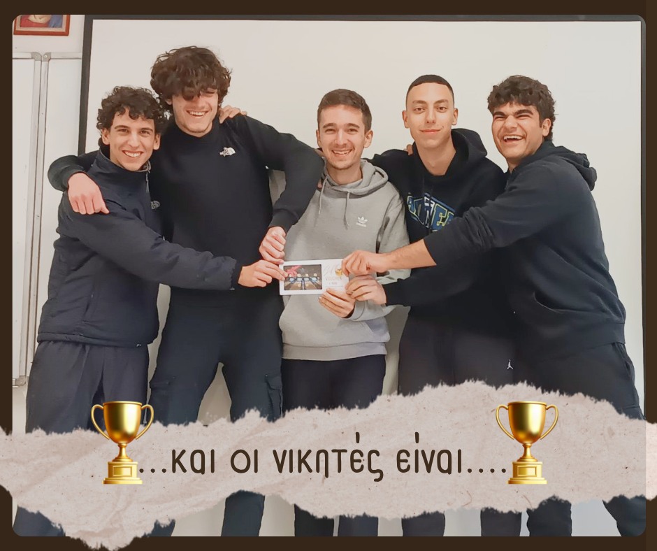 Μετά από έντονο ανταγωνισμό, οι νικητές αναδείχθηκαν οι Δασκαλάκης Πρόδρομος, Θεοδώρου Κωνσταντίνος, Λουκά Παναγιώτης, Μεττής Αντώνιος και Χρίστου Αντρέας. Η επιτυχία τους επιβραβεύτηκε με ένα δωροκουπόνι αξίας 100€ για bowling, προσφορά του Συνδέσμου Γονέων, προσφέροντάς τους τη δυνατότητα να συνδυάσουν τη διασκέδαση με την πρόκληση που αντιμετώπισαν.