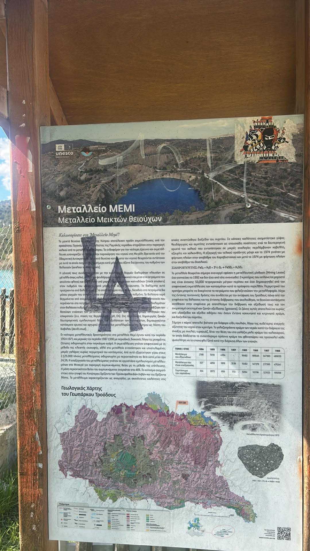 Ασυνείδητοι βανδάλισαν έως και την ενημερωτική πινακίδα, όπου αναγράφονται λεπτομέρειες για τη λίμνη και το ιστορικό του μεταλλείου, καθιστώντας το περιεχόμενό της δυσανάγνωστο.