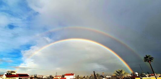 Ισχυρές βροχές πλήττουν σήμερα την Κύπρο, με μεγαλύτερη ένταση στις περιοχές της Πάφου, της Λεμεσού και της Λάρνακας, ενώ η Λευκωσία αναμένεται να δεχθεί καταρρακτώδεις βροχοπτώσεις αργότερα. Το ουράνιο τόξο, όπως καταγράφηκε από τον Μιχάλη Μιχαήλ στο Κολόσσι, φωτίζει τον ουρανό και δίνει ελπίδα στη δύσκολη μέρα. Ποτάμια υπερχείλισαν, δρόμοι και χωράφια έχουν πλημμυρίσει, ενώ … Συνεχίστε να διαβάζετε το ΟΥΡΑΝΙΟ ΤΟΞΟ: Αυτό που ξεχώρισε ανάμεσα σε προβλήματα και βροχές – Η στιγμή που γλύκανε τη μέρα-(Βίντεο).