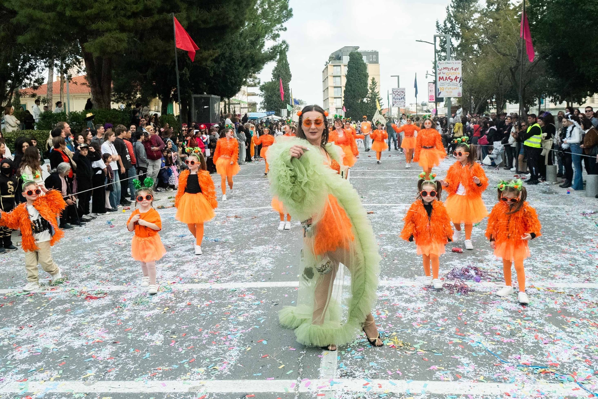 Η διαδρομή της λεωφόρου Γεωργίου Γρίβα Διγενή κατακλύστηκε από ομάδες, άρματα και καρναβαλιστές κάθε ηλικίας, δημιουργώντας μια ζωντανή ατμόσφαιρα γιορτής και φαντασίας. Ο «Βασιλιάς του Μαγεμένου Δάσους» άνοιξε την παρέλαση, πλαισιωμένος από τις Μαζορέτες Πάφου της Ακαδημίας Χορού Κωνσταντίνας Χατζηευτυχίου και τη Σχολή Χορού Danceroom Jake Athanasiades, που ξεσήκωσαν τους παρευρισκόμενους με ρυθμό και ενέργεια.