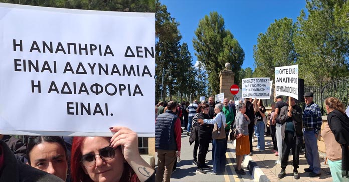Ηχηρό μήνυμα έστειλαν τα άτομα με αναπηρία μέσα από τη σημερινή εκδήλωση διαμαρτυρίας έξω από το Προεδρικό Μέγαρο, με την Παγκύπρια Οργάνωση Τυφλών και της Ένωσης Κυπρίων Συνταξιούχων να τονίζει πως η αξιοπρέπεια δεν αποτελεί προνόμιο, αλλά θεμελιώδες δικαίωμα που οφείλει να διασφαλίζεται στην πράξη.