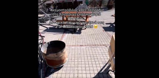 ΠΛΑΤΡΕΣ: Το Χριστουγεννιάτικο χωριό επαναλειτουργεί μετά τον ανεμοστρόβιλο- (Βίντεο)