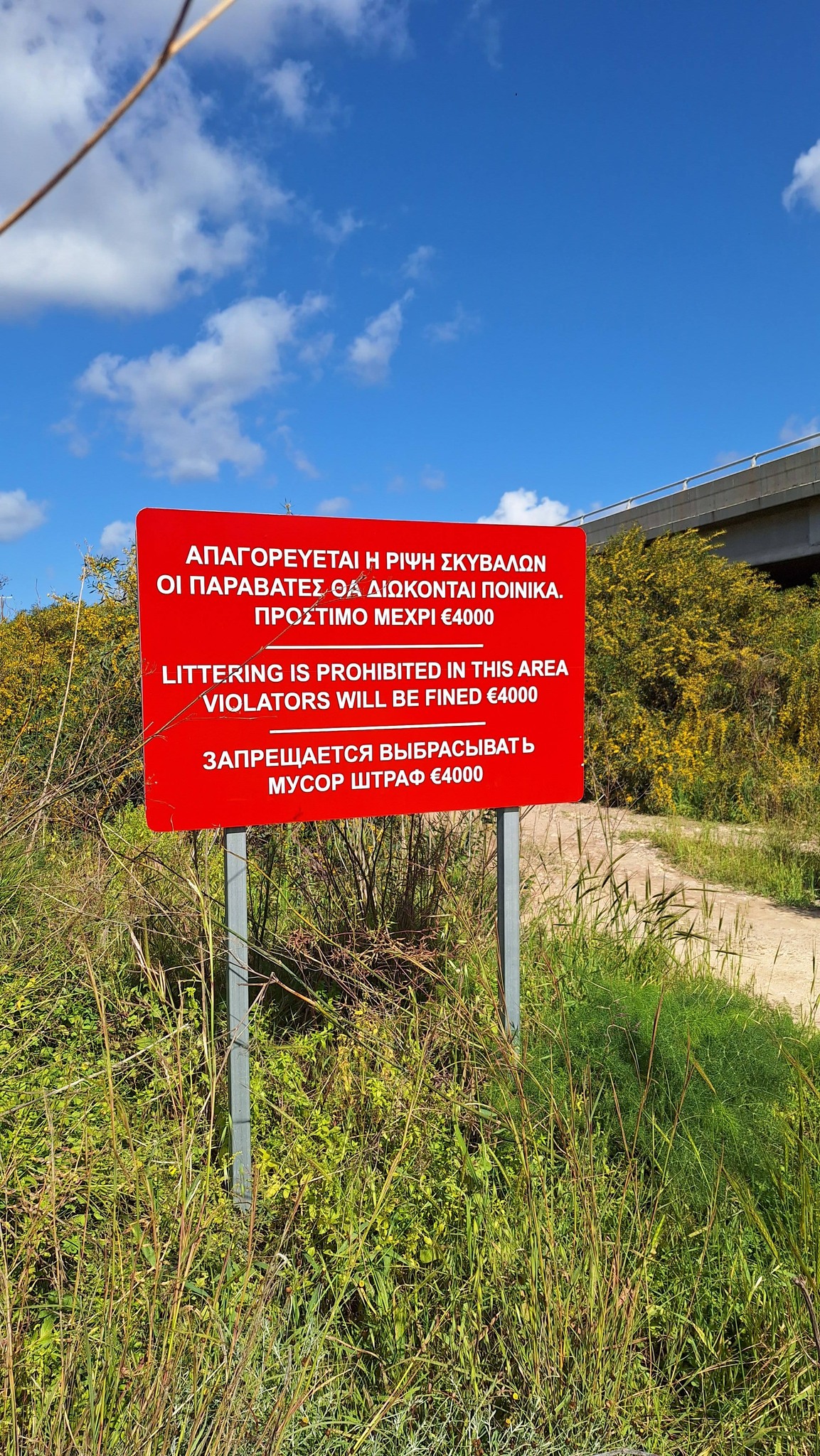 Η πινακίδα προειδοποιεί ότι οι παραβάτες θα τιμωρούνται με πρόστιμο έως 4.000 ευρώ, αλλά φαίνεται ότι έχουν πολλά χρόνια να πιάσουν κανέναν στα… χέρια τους.