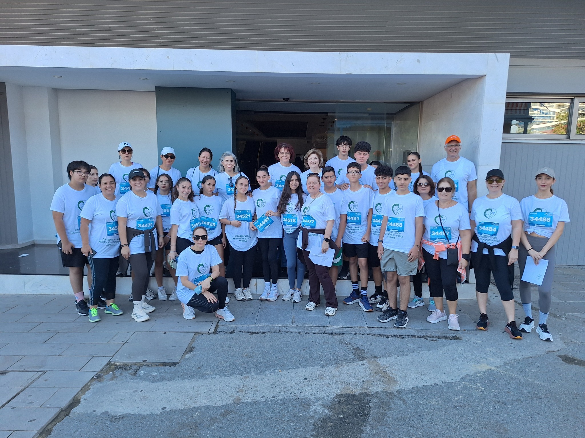 Τα παιδιά από το Γυμνάσιο Δροσιάς, οι καθηγητές και οι γονείς τους που συμμετείχαν, μαζί με τον Σύνδεσμο Ατόμων με Πολλαπλή Σκλήρυνση Λάρνακας.