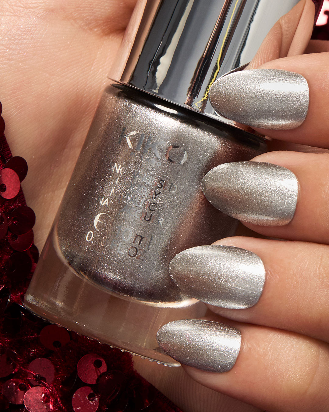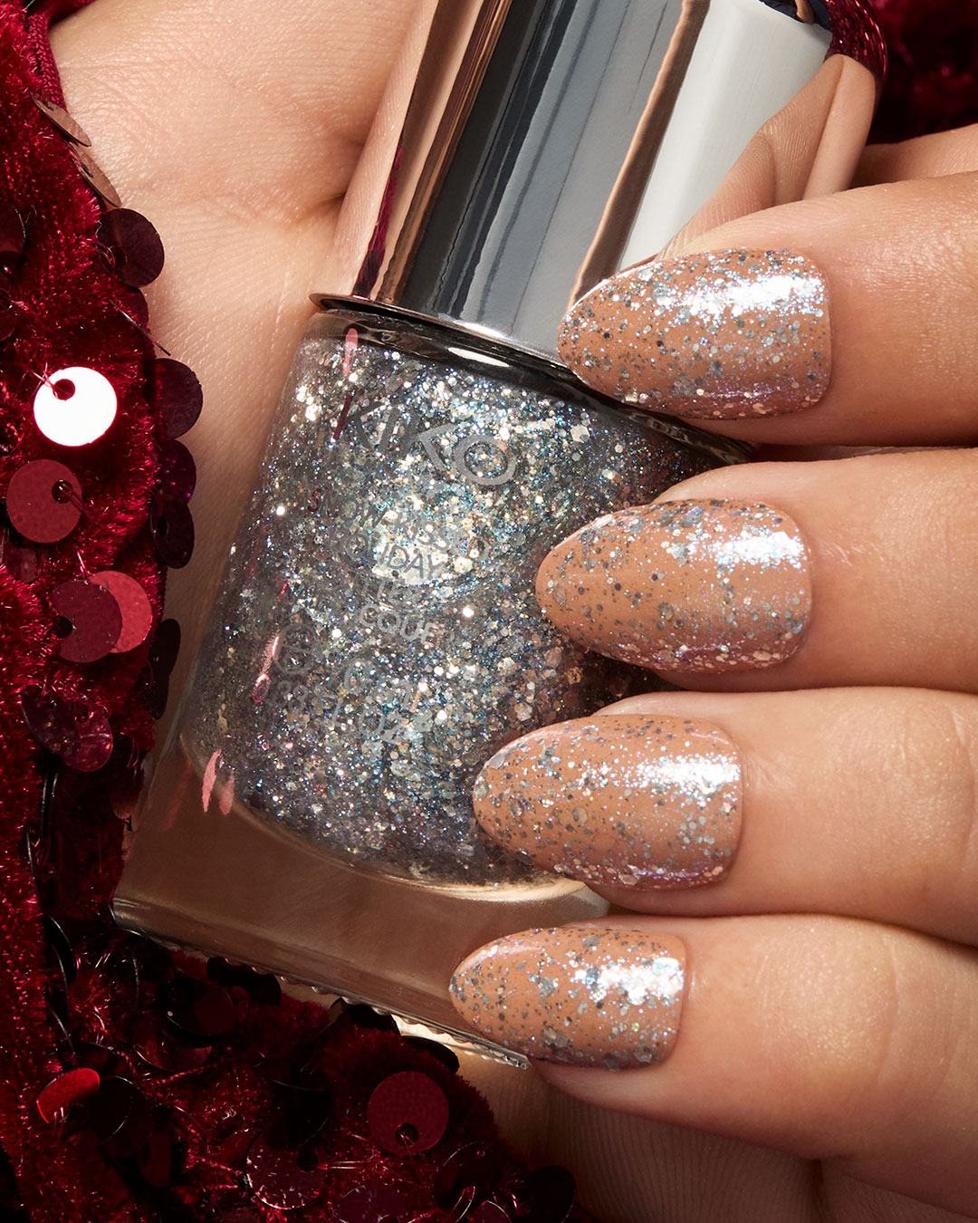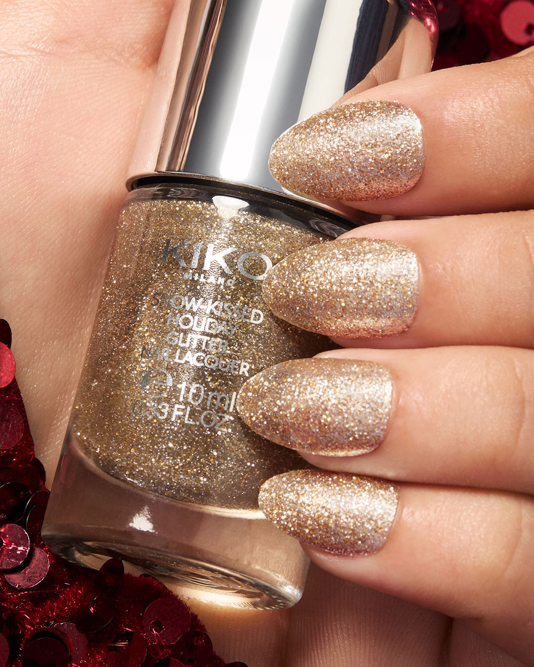 Το Snow-Kissed Holiday Metallic & Glitter Nail Lacquer προσφέρει γιορτινές αποχρώσεις σε gel-effect σύνθεση, διαθέσιμες σε metallic και glitter φινίρισμα, για χρήση μόνο του ή ως topcoat. Η εμπειρία ολοκληρώνεται με τα Snow-Kissed Holiday Scent of Milan Solid Fragrances, διαθέσιμα στα τρία εμβληματικά αρώματα της KIKO Milano — Isola, Montenapoleone και Duomo — με amber, musky, fruity ή gourmand νότες σε compact μορφή.