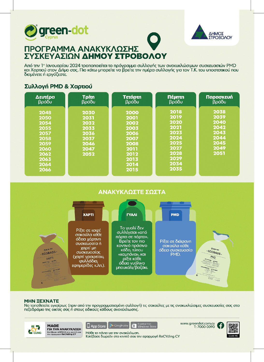 Παρά το γεγονός ότι η συλλογή των ανακυκλώσιμων υλικών στην συγκεκριμένη περιοχή του Στροβόλου, σύμφωνα με το υφιστάμενο πρόγραμμα, πραγματοποιείται κάθε Δευτέρα, κάτοικοι αναφέρουν ότι η αποκομιδή δεν έχει γίνει εδώ και δύο εβδομάδες.