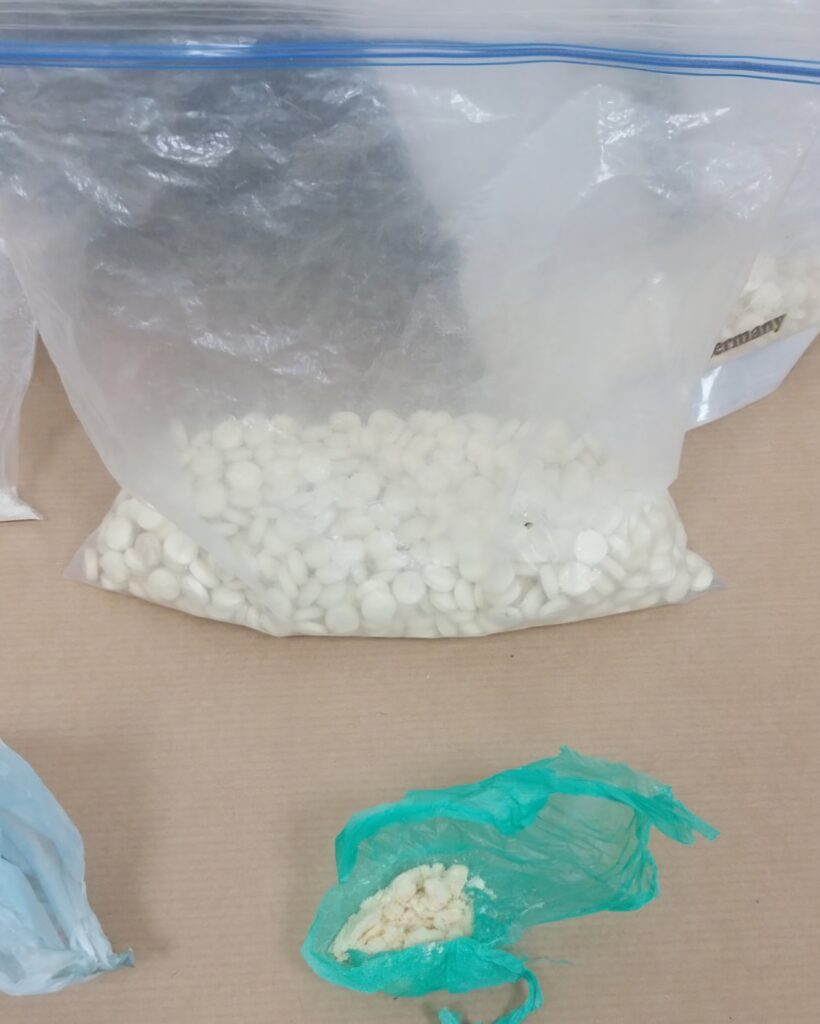 Ακολούθως, από έρευνα που διενεργήθηκε από την ΥΚΑΝ στο διαμέρισμα όπου διαμένει, εντοπίστηκαν επιμελώς κρυμμένες τεράστιες ποσότητες ναρκωτικών, και συγκεκριμένα 804 δισκία captagon, πέραν των 870 γραμμαρίων μεθαμφεταμίνης (crystal), 193 γραμμάρια κοκαΐνης, 144 γραμμάρια κάνναβης, 48 γραμμάρια ρητίνης κάνναβης, δισκία ecstasy, αμφεταμίνη, καθώς και χρηματικό ποσό ύψους €3.515.