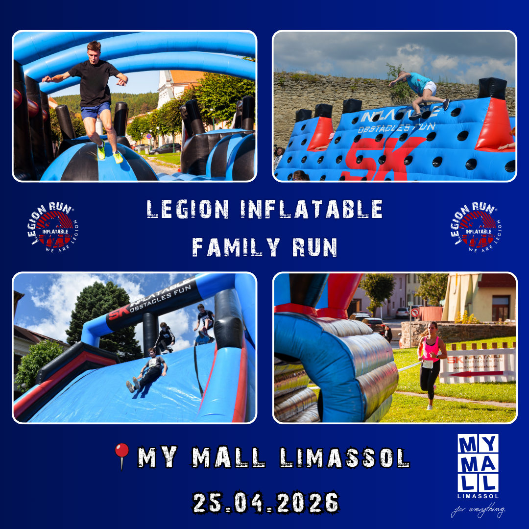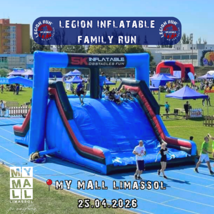 Το My Mall Limassol, ως premium χορηγός, φιλοξενεί το Legion Inflatable Family Run το Σάββατο 25 Απριλίου 2026, από τις 10:00 μέχρι τις 13:00, στον εξωτερικό του χώρο, προσκαλώντας μικρούς και μεγάλους σε μια ξεχωριστή ημέρα γεμάτη δράση, διασκέδαση και οικογενειακές στιγμές.