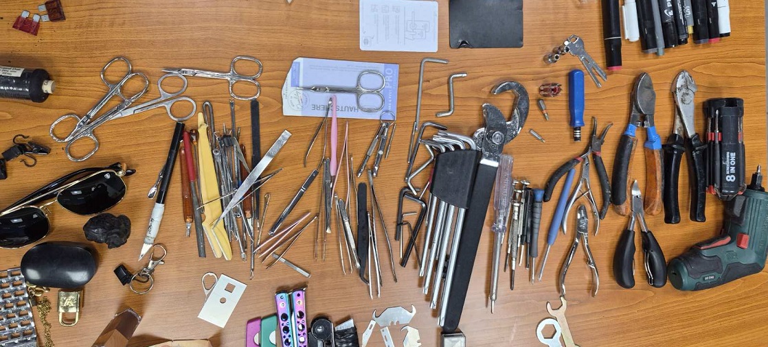 Κατά τον έλεγχο, στην κατοχή του άντρα βρέθηκαν και κατασχέθηκαν πολυάριθμα κοσμήματα, όπως ασημένια σκουλαρίκια, δακτυλίδι, καδένες λαιμού και σταυροί, καθώς και ένα γυναικείο ρολόι. Επιπλέον, εντοπίστηκαν τραπεζικές κάρτες στο όνομα πέντε διαφορετικών προσώπων, δύο μαχαίρια, επιθετικά όργανα, διαρρηκτικά εργαλεία και περίπου πέντε γραμμάρια κρυσταλλικής ουσίας, που θεωρείται ναρκωτικό.