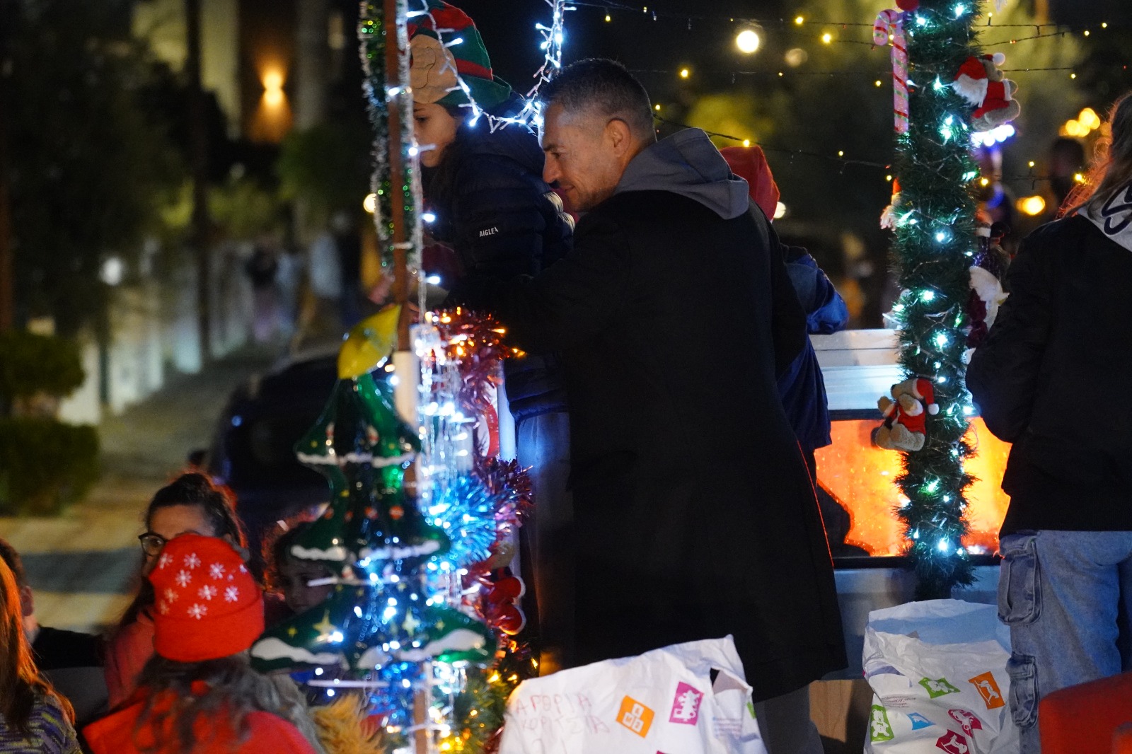 Πάνω σε καταστόλιστο φορτηγό, ο επιχειρηματίας Τζον Χριστοδούλου, μαζί με εθελοντές από το Σωματείο Νεολαίας Πρόοδος Καϊμακλιού, μοίρασαν δώρα σε παιδιά όλων των ηλικιών στις γειτονιές του Καϊμακλιού.