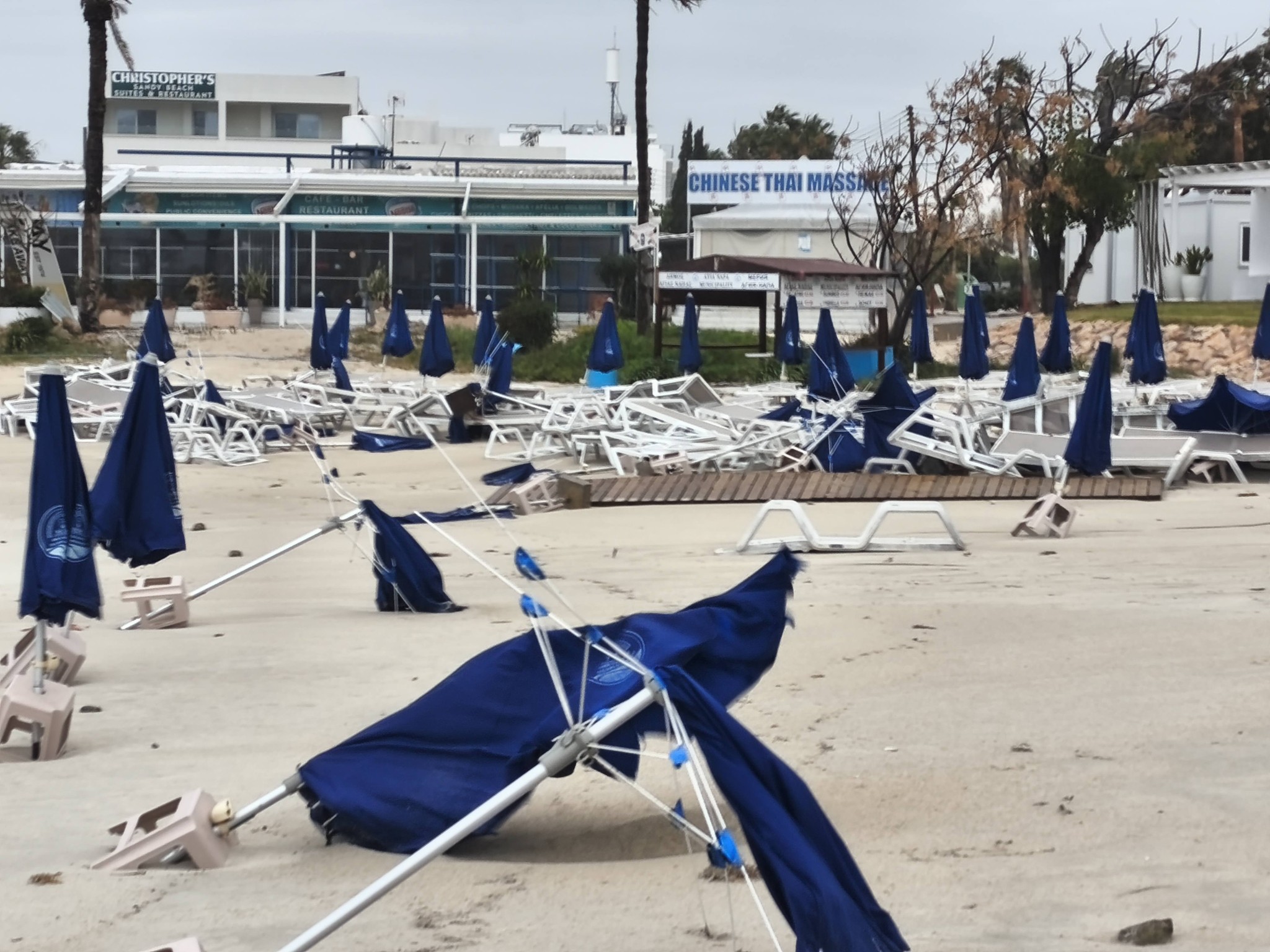 Μετά τους ισχυρούς ανέμους που έπληξαν πρόσφατα τις παραλίες της Αγίας Νάπας, πάνω από 400–500 θαλάσσια κρεβατάκια και ομπρέλες παρασύρθηκαν στη θάλασσα, δημιουργώντας κίνδυνο για τη δημόσια ασφάλεια και τη θαλάσσια ζωή.